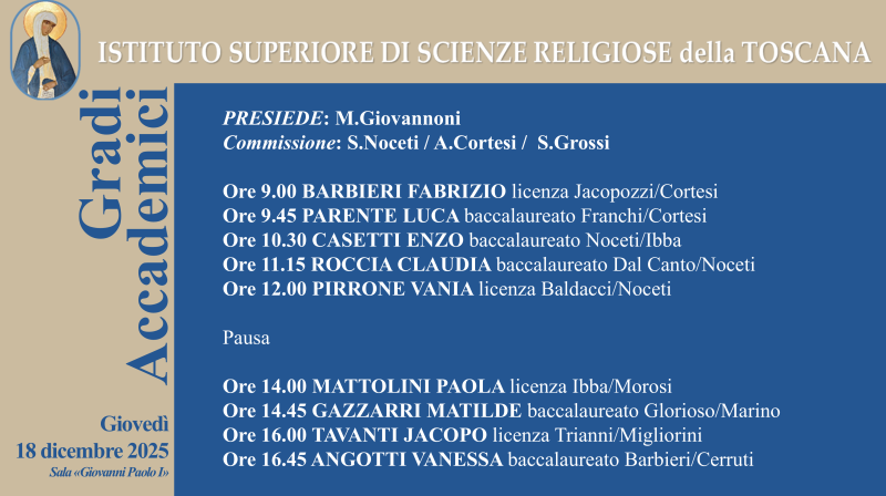 | Ore 12.00 | PIRRONE VANIA | licenza | Baldacci/Noceti |